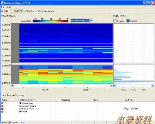 摩托罗拉系统选择对整个无线网络的整个物理层实现完整的呈现,包括各个信道的干扰强度、信道使用率以及是否有非WLAN的干扰。在下图的示例中,信道11的干扰高达-25dBm,但是利用率只有5%,而信道1的干扰在-40到-50dBm之间,接口利用率却高达100%,而且是持续的微波干扰。在这种情况下,信道1干扰小,但基本是不可使用的。信道11干扰极强,却一定是客户体验最好的。因此,物理层可视化在无线网络中是非常重要的。