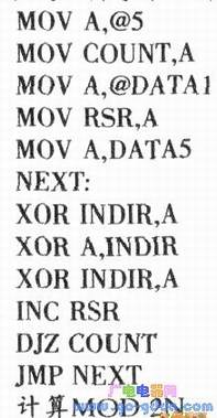 下面的程序将5组DATA内容移位,第一笔缓存器的数据传到第二笔缓存器内,第二缓存器的数据再传送到第三笔缓存器内,依此类推,最后一笔数据则传给第一个缓存器,形成一种字节数据旋转。