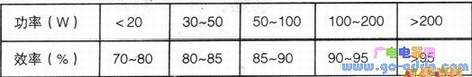 变压器的效率和变压器的功率有关,一般功率越大效率可以做得越高,它们的大致关系如下表所示。