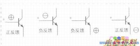 对于NPN型管,输入信号电压瞬时极性用+表示,反馈电压极性见圆圈内所示,常见的有4种情况见下图,对应的反馈极性也可以判断出来: