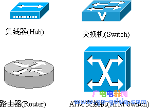组建局域网使用的主要设备为,集线器、交换机、路由器和ATM交换机等,如图1-6所示。