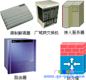 组建广域网使用的主要设备为,、广域网交换机、接入服务器、路由器和防火墙等,如图1-8所示。