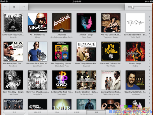 在 iTunes 11 中,iPad 在界面呈现和交互上的很多成功经验被移植过来。例如最明显的“全幅界面”展示专辑封面,与 iPad 上的音乐应用如出一辙: