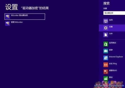 首先我们按下Win徽标键+W,在弹出的搜索框中输入驱动器加密,点击搜索结果,如下图: