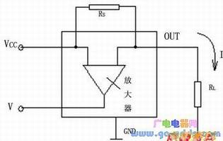 图1是一种电流检测电路.RS是电流检测,RL是负载(通常为直流电机、电磁阀或加热器等).当电流流过电流检测时产生一个电压降VRS,此电压输入电流检测,经放大器放大后输出与电流I成比例的电压V.为减小在RS上的电压降VR,检测一般取很小阻值(几毫欧到几百毫欧).