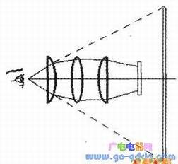 其原理类似望远镜的目镜,如下图所示,由3~5片透镜组成。
