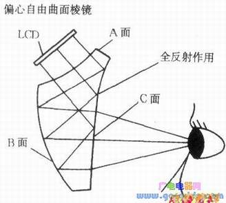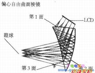 日本Olympus即利用这种离轴式偏心自由曲面棱镜制作了小巧、轻便的随身看显示系统。