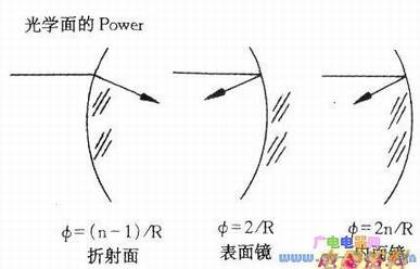 此系统不同光学镜面的不同光学Powerφ,见下图。其中,折射镜面的φ=(n-1)/R,面表面反射镜φ=2/R,而内反射镜的φ=2n/R,(其中R为曲率半径,n为折射率),由此可以看出,曲率半径越小,φ越大,但此时,φ越大像差也越大;其次,内反射镜与透射镜(折射面镜)相比,只有1/6的曲率半径就可以得到同样的φ值。所以其像差小,无色差。