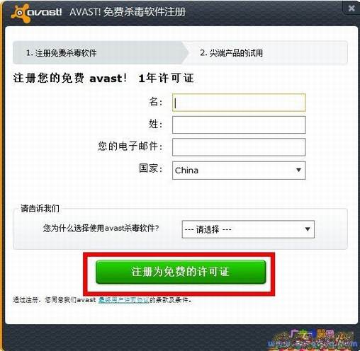 但是第一次使用avast!时需要用户进行简单的注册,注册之后就可以获得一年的使用期,到期之后再次注册即可。需要注意的是在注册成功之后记得要选择继续使用基础的防护,不要选择试用网络安全软件,因为试用期只有20天。
