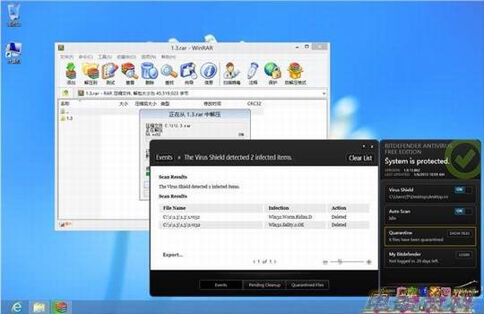 最后看下Bitdefender的表现,在解压缩的时候对恶意文件进行实施拦截,一共检测到了114个样本中的80个,检测率不低,稳居第二的宝座。Bitdefender Antivirus 2013 免费版除了防毒功能外,还可以通过B-Have 技术自动扫描,侦测程序异常行为,支持 Anti-rootkit 防御,支持HTTP扫描侦测,并支持 Active Virus Control 未知病毒防御功能…等功能。对于普通用户来说足够用了。