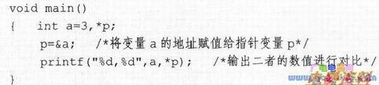 类型标识符木标识符;其中标识符是指针变量的名字,标识符前加了个“*”号,表示该变量是指针变量,而最前面的“类型标识符”表示该指针变量所指向的变量的类型。一个指针变量只能指向同一种类型的变量,也就是说,不能定义一个指针变量,既能指向一个整型变量又能指向一个双精度变量。