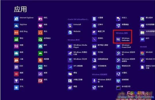 在所有应用的列表里很容易就可以在Windows系统的应用里找到“Windows Defender”的身影。