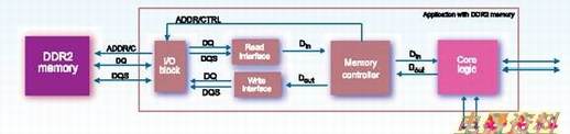 这些块以及它们与 DDR2 存储器芯片及核心逻辑的关系见图 2 所示。