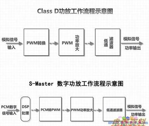 常规D类数字功放和S-Master数字功放工作流程示意图