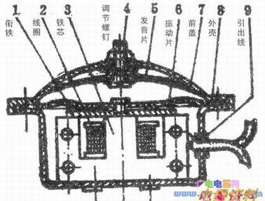 在摩托车上一般使用电磁振动式喇叭,并且有直流与交流两种。直流喇叭工作时,利用触点的通断。的断续、交替吸动或释放衔铁,从而带动振动板与共振片,发出响亮的声音。交流喇叭工作时,则利用交变的电流,交替吸动或释放衔铁,从而带动振动盘及膜片振动而发出声音。摩托车直流喇叭结构如下图所示,JH70型、CY80型摩托车均采用这种结构的嘲叭。