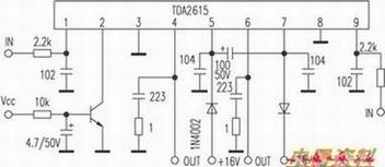 一台SANSUI牌C-2028型组合音响的后两个声道无声,检查发现这两个声道的块TDA2615损坏。多处求购无货。在该音响中,前两个声道使用了TDA2616功放块,通过实绘,与TDA2615功放电路作比较,除两种功放块的封装形式略有不同外,引脚功能完全一致。试从广州邮购一块TDA2616,直接互换成功。