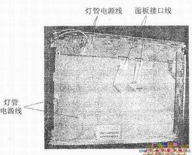 (1)拆下液晶面板金属屏蔽盖,可以看见左边四条灯管的接线,中间的两条为数据线,如下图示。