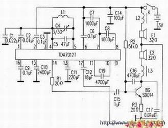 TDA7021T实装电路图见图所示。