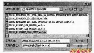 从随机光盘“2023B-L”文件夹下查找可代换的面板驱动程序,一般而言,面板驱动程序的文件名都较长,在文件名中都标注了驱动板名、面板型号、接口类型、面板、面板分辨率等参数,查找代用驱动程序时,尽量使两者参数一致,特别是接口类型、面板电压和分辨率这三个参数,一般只要它们一致,就可以代用,一个不行可以多试几个,总会有一个合适的。实际上,很多液晶面板虽然型号不同,但是接口、接口定义及供电电压均相同,驱动程序可以相互兼容。另外,如果有条件,也可上网搜索下载驱动程序。