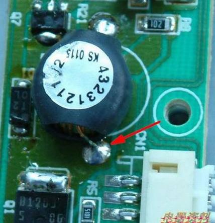 注意:在焊接之前,一定要取下高压板与主控板的连接插座(如下图红色箭头所示的插头位置),防止在焊接时,电烙铁产生的静电将主板上的芯片,造成损坏。