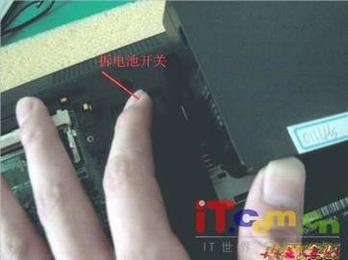 接着我就看工程师是怎样拆这款本子的。首先看到一个拨动开关,只要一按开关电池可以自动弹出来,方便了用户在使用电池中更换或者保护电池做了很大的改变