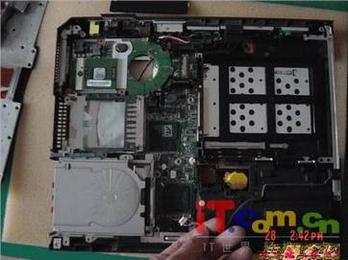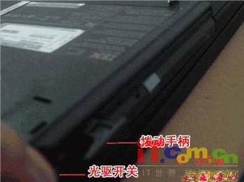 就拆电池和光驱的方式也和R系列的相同。大大方便了用户自行升级CDRW(DVDW)用户只要手轻轻一拔开关自动弹出一个拨动手柄方便用户把光驱取出来