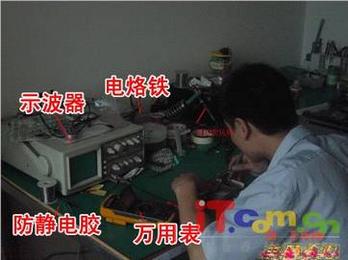 工程师用各种仪器对本子进行深入的检测,使用示波器看的波形测量芯片的输出输入电压原来维修一台本本真的不是那么简单的,就检测也费了他们不少时间和精力啊!真的少点功夫都不行呢!最后工程师检测到南桥没供电输出所以造成开机没显示,更换我还是第一次看呢。看他们是怎样把BGA封装芯片拆下来的