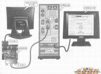 此外,若数字图像信号处理(驱动板)或驱动板上的主芯片损坏及芯片内部程序损坏都会造成液晶显示器不能正常工作,此时需要用ISP(编程器)工具等将程序重新烧写入芯片才能使液晶显示器恢复正常,如下图所示。