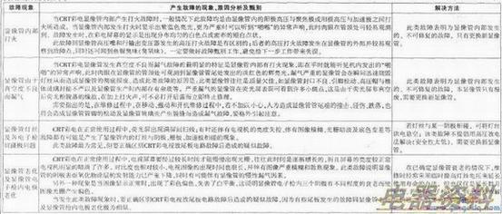 彩电显像管不可修复故障分析及更换要点,如附表所示。