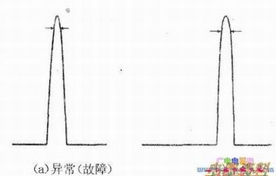 (3)根据波形判断行扫描高压输出的电压调整率:电视机在正常收看时,随着调整亮度或者,图像的幅度(大小)有轻微的发生变化,用户一般不易察觉,但是有的比较严重。这高压输出电压调整率太差,其原因是行输出变压器本身问题和的配合问题。用示波器测量行脉冲波形上部的宽度,如果上部太尖(宽度窄),如下图(a)所示。此变压器应该更换试之[正常波形为上部应保持一定的宽度,如下图(b)所示]。