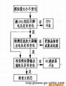 3.灵活运用模拟检修逻辑流程图在彩电CPU遥控系统中,各模拟量的控制电压由CPU内产生,若这部分电路出现异常,则表现为模拟量不可调或调节范围不够。模拟量控制电路的检修流程如图所示。
