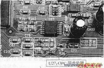 长虹非奇美屏的LT32710主板与LT37710的主板相比,在硬件上LT32710的主板少了如下图所示的OPC同步处理U27(CD4013)和R259、R260、R262等元器件。