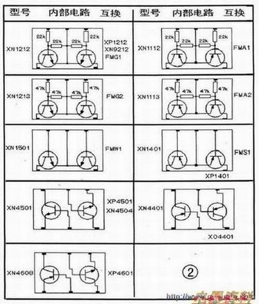 随着技术的发展,电器设备的小型化已成为趋势。为了减小印制板面积,简化生产成本和小型化,将两个晶体三极管封装到一个管子里。称之为组合式贴片(也叫复合晶体三极管),其封装形式及外形见图1,内部电路见图2。由于该型组合晶体管发展时间不长,各生产厂家的组合晶体管型号及内部电路连接线引脚方式不统一,因此,在没有相关的技术和资料的情况下,要想维修电子设备是不可能的,了解认识电子元件是电器维修工作的基础,否则无从谈起。