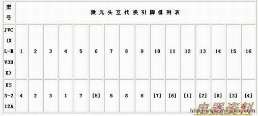 JVC激光头与索尼激光头代换引脚排列表