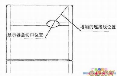 (5)取下显示器面板及显示器固定架,在显示固定盒直通上门上轴套的位置用一约φ8 mm的铁管,铁管的口部,磨出薄刃,沿着连接线的位置,逐步在发泡层内铲出一个通道,用于穿连接线用。