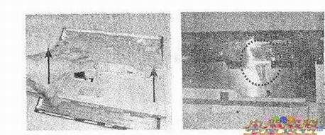 (3)抬起后盖,用小钩取下防护罩,如下图所示。