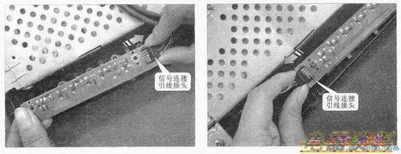 然后按如下图所示方法拔下该电路板与主控电路板之间的信号连接引线。