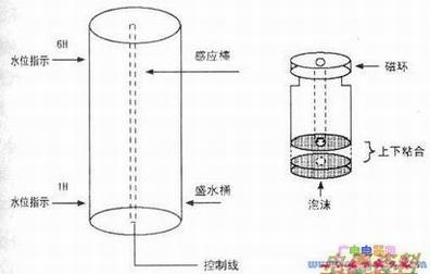 从下图可以看出,水位传感器由感应棒、磁环、盛水桶等组成。当水位在“1H”时,热水器水位最低,磁环处于盛水桶的底部。在给热水器加水时,正常情况下磁环会随着水位的升高而上升,当水位达到设定的最高水位“6H”时,热水器停止加水,此时,磁环也升到最高水位“6H”处。