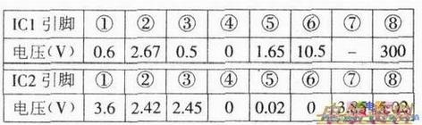 注:下表是l(DAP8A)和IC2(DASO01)在清华同方LB501KEL上实测的正常工作电压值,电压值用DT9508B数字表测得。