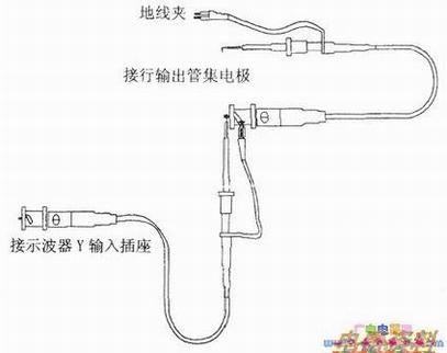4.串联探头测量法对双踪示波器,一般都配有两个10:1衰减探头,测量逆程脉冲等较高幅度的电压波形时,如果没有100:1的探头,也可将此两个10:1的探头串联起来,组成100:l探头使用。使用时,两探头衰减开关均置×10位置,首尾相接,使用起来非常方便,如下图所示。