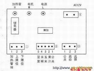 注意事项:原乐帮LB-200A型豆浆机的加热管为250W,而赛科板12V的触点为5A,一定要换成10A,否则触点在使用几次以后可能会因烧结而一插就直接加热。