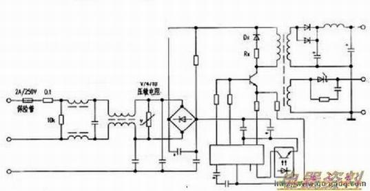 “闻”就是在检查时,注意是否闻到烧焦昧,因为烧焦味是元器件长时间处于高温状态下造成的,所以,烧焦昧可以粗略判断故障部位。在“看、闻”完成之后,就要使用在线粗略的检测一下故障部位元器件的通断情况。或者正反向特性。以上为“静态检查”,即不加电源的检查。通过这样的检查,一般很快就能查到故障的大体部位,但不一定能够彻底排除故障。例如:保险丝烧断。一眼就看到,但又不能盲目更换保险丝,因为烧保险,说明还存在问题,一定得找到电路问题的原因,才能更换保险丝。这时就急需一张原机电路图,才便于继续查找和分析原因了。为求准确,参照电路绘出该模块的局部电路图见下图。