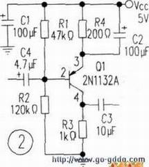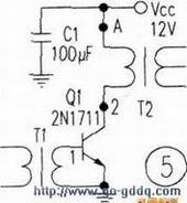 再举一例:如图4中l、2点。1点外接并与相连。如果电压过高,电阻的故障就很小。最大可能是由引起的电压过高。如果过低则可能电阻断。而2点外接,如果电压过高。的故障就很小,最大可能是由集成电路引起的电压过高,如果过低则可能是电容击穿。这就是要结合电压的来源确定部位,即常说的寻根求源法。