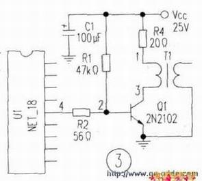 对于某些电路,特别是处理小信号的三极管和具有反馈电路的放大器,通过交直流短路可人为改变电路状态,如有预定的反应则为正常。如不反应或没出现预定结果,该电路则可能出现故障。例如图3:当测量3点时,发现电压很低。可以把2点对地短路。这时3点电压上升到电压,说明三极管正常,问题出在集成电路;如果3点电压不变或变化很小,不能上升到电源电压就说明三极管存在击穿的可能。这时用测电阻法就可确定Q1、R4、T1中的故障元器件。