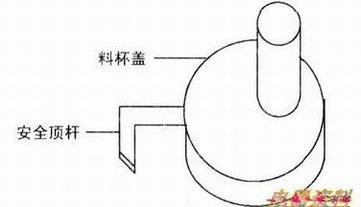 4.试机把粘牢后的安全顶杆试装在机体料杯上,观察其开关是否顺畅自如。如果不顺畅,可用锉刀或细砂纸打磨不光滑处粘物至开关顺畅关上。把开关复位,接通,启动手动开关,看电机是否转动。如果电机不转,说明顶杆端头不到位,未能与电机相连。此时,要对顶杆进行调整。