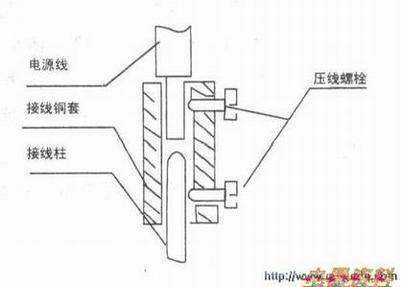 其实,压缩机接线柱除了从根部烧蚀裂断无法修复外,高于根部8mm以上的均可能修复。针对不同的烧蚀情况,有两种修复方法:1接线柱完整但插接片烧蚀的,可用合适的瓷接头内接线铜套,一端套入接线柱、另一端套八线,分别压紧相应压线螺栓(见下图)。操作中既要保证可靠紧固,又不能用力过度,造成接线柱折断;2接线柱不完整但高于根部8mm以上的,可拆机排氟后,打开外机维修阀,让制冷管道通大气。用湿毛巾敷盖在接线柱根部周围,再用铜焊条对外接线柱快速,使接线柱“吃铜”后,改用低熔点银铜焊条直接与之焊接作接线柱。最后按第一种方法连接线。