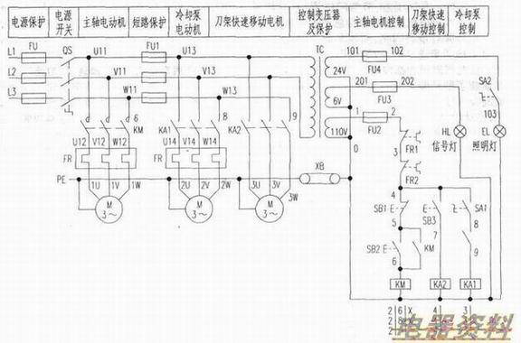 下面以CA6140车床电气控制线路为例,讨论回路电阻测量法在机床控制线路PE故障检修中的应用,电路图如下图所示。