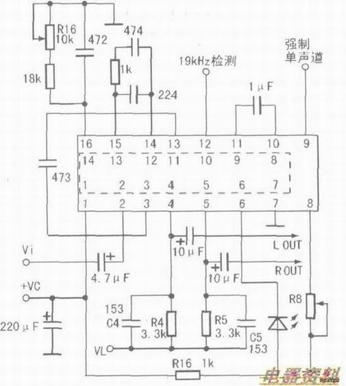 因电路其他地方基本相似。即使部分型号立体声解码块应用电路及引脚外接元件取值略有不同.也不会影响电路的正常工作。