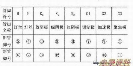 (1)将原机显像管拆下,换上新显像管,装好消磁线圈与接地线,再更换一只国产显像管插座。在原视放板上对好方向打洞焊好,将原接管座的印刷线路用刀划断,用导线连接到相应的新管座脚上(如表所示),管座上端的脚为聚焦极,放电管接地端应接地,空头为聚焦极。