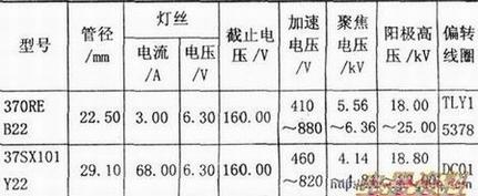进行显像管的代换时,首先应对其参数进行比较,两种显像管的性能参数及管脚排列比较如上表和下表所示。
